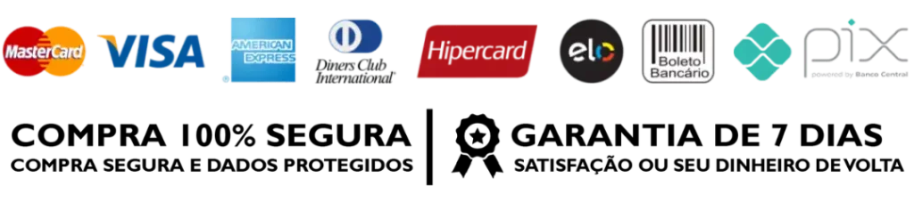 Experimente por 7 dias sem risco. Se você não gostar por QUALQUER motivo, devolvemos 100% do seu dinheiro. Sem perguntas, sem burocracia.